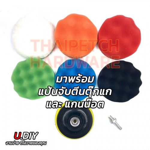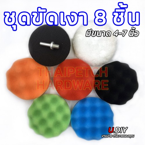ชุดขัดเงา ฟองน้ำขัดสี ขนแกะขัดลบลอย ชุด 8 ชิ้น U.DIY ใช้กับสว่าน เครื่องเจียร์ มีหลายขนาด